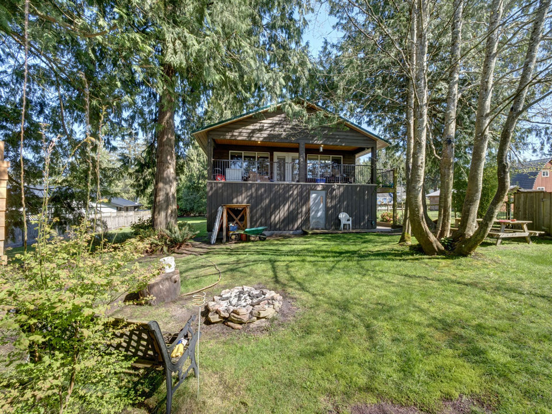 Nestled in the heart of a quiet neighborhood on sought-after Francis Peninsula, this 2180 sq ft home is well maintained and offers privacy, space and versatility. Set on 1/3 of an acre, this flat, fenced lot has low maintenance gardens, mature trees and a private back yard overlooking pastoral farmland. Metal roof and two covered balconies to extend your living space. Upstairs are two bedrooms, one bath & kitchen-living room open plan. Downstairs, envision additional living space, garage, workshop, or a creative blend of all. Adding to the appeal is a 768 sq ft, barn-style storage building (metal roof) providing a space for hobbies, equipment or business needs. Easy access to Madeira Park amenities, swimming beaches and trails. An ideal property for a young family seeking low maintenance.
